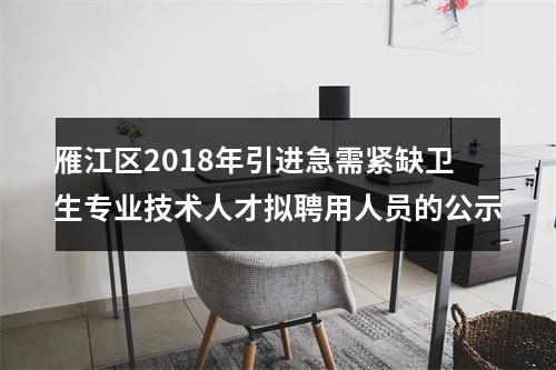 声明:专注 雁江区2018年引进急需紧缺卫生专业技术人才拟聘用人员的公示 相关岗位分析;专业指导面试技巧;保障就业成功概率。
