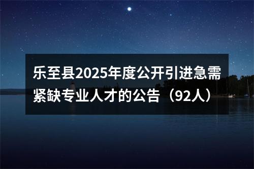 在线咨询 为深入实施新时代人才强县战略,全力打造绿色产业人才发展集聚区,乐至县部分用人单位拟面向海内外公开引进急需紧缺专业人才92名。现就有关事项公告如下: