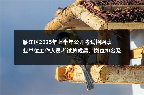 原标题:雁江区2025年上半年公开考试招聘事业单位工作人员考试总成绩、岗位排名及体检相关事宜的通知